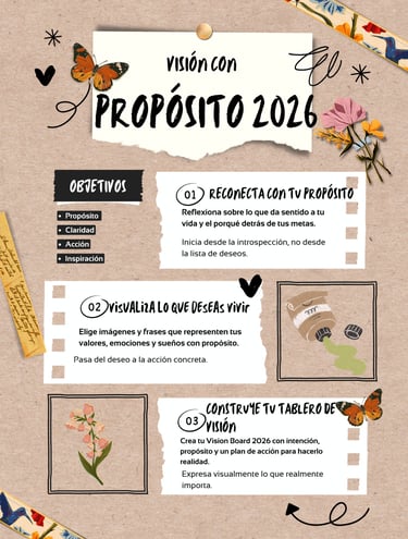 Este no es un simple tablero de sueños. Es un espacio para mirar hacia dentro, reconectar con lo que realmente da sentido a tu vida y proyectar un 2026 coherente con tus valores, tu propósito y tus emociones.